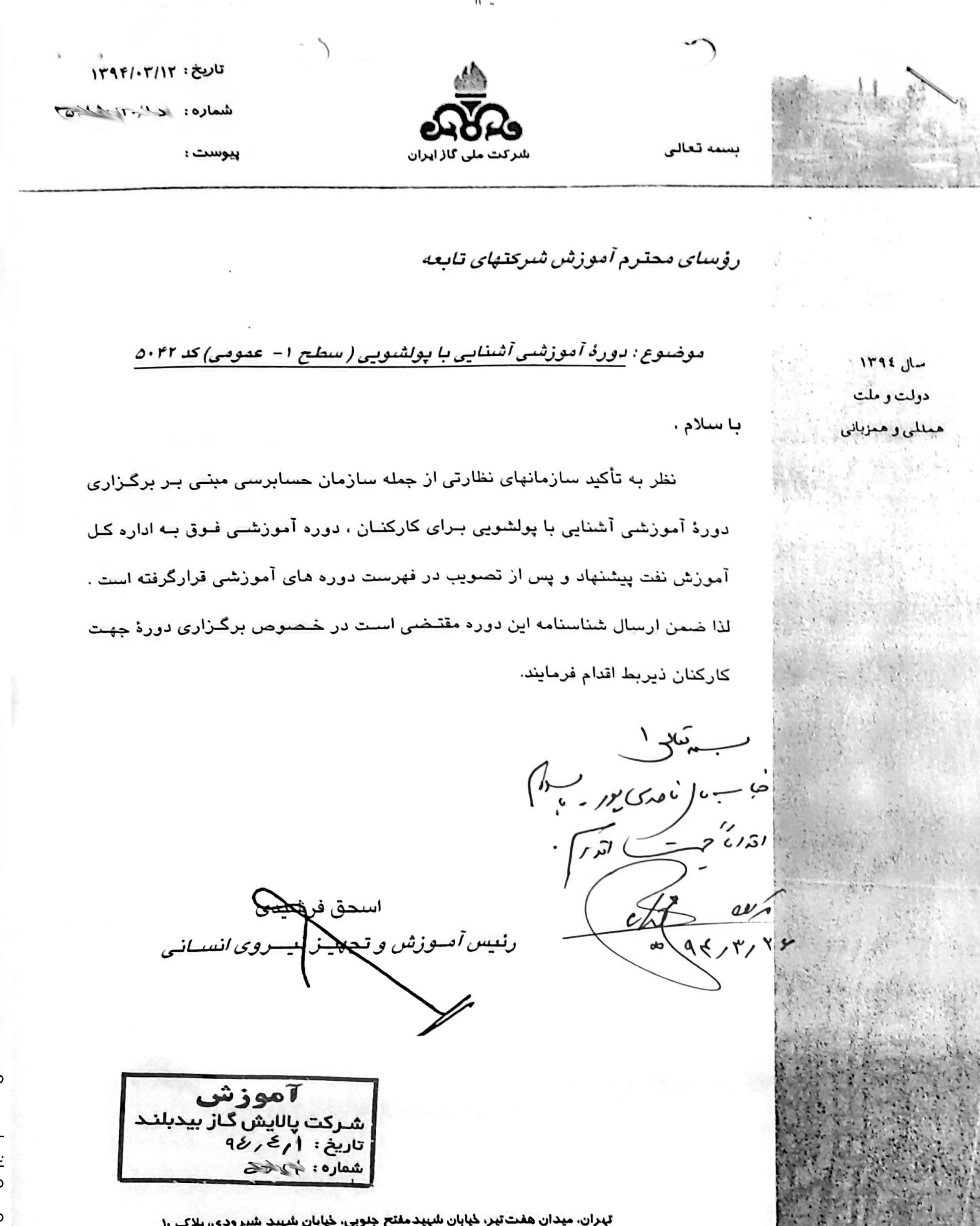 محل برگزاری: پالایشگاه گاز بیدبلند خلیجفارس (آغاجاری) شهرستان امیدیه استان خوزستان